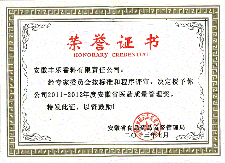 2013年-安徽省醫(yī)藥質(zhì)量管理獎(jiǎng)